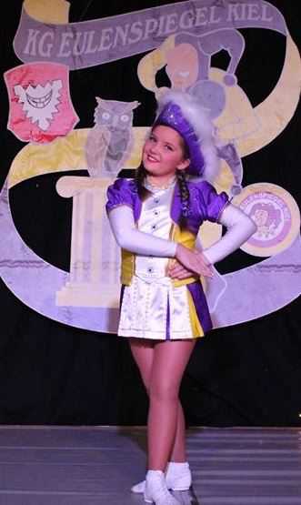 Sarah-Alena ist 11 Jahre alt und tanzt bereits in der 7. Session für die KG Eulenspiegel. Sarahs Training steht unter dem Motto: "Let's FEDS". Mit Fleiß, Ehrgeiz, Disziplin und viel Spaß trainiert sie 3x in der Woche. Ihre letzte Session als Jugend-Tanzmariechen konnte sie bei der Verbandsmeisterschaft in Travemünde mit dem obersten Treppchen krönen. Nun startet sie sowohl mit der Garde als auch als Mariechen in die erste Session bei den Junioren. Wir wünschen toi, toi, toi.