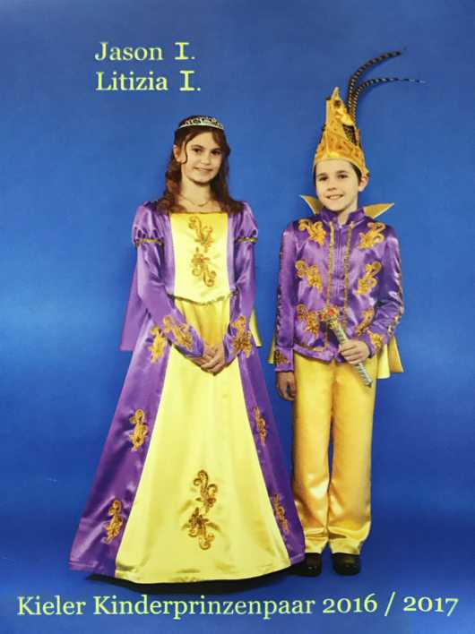 Seine Naivität Prinz Jason I. Ich Prinz Jason bin am 03.07.2004 geboren und bin somit 12 Jahre alt. Mit bürgerlichem Namen heiße ich Jason Düringer. Auch ein Prinz muss zur Schule gehen. Diese Ehre mich als Kieler Kinderprinz zu Lehren hat die Herrmann-Löns-Schule in Kiel-Elmschenhagen. Meine Lieblingsfächer sind Mathematik und Sport. Am liebsten zu essen mag ich Pizza. In meiner Freizeit wenn ich mal dazu Zeit habe wenn ich nicht mal am regieren bin betreibe ich Tanzsport bei der KG Eulenspiegel in der Junioren Garde und bin dort auch Tanzmajor.